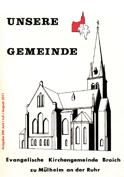 Die Ausgabe Nummer 300 ist gleichzeitig die letzte Ausgabe von UNSERE GEMEINDE. Mit der Fusion der Kirchengemeinden Broich und Saarn zum 1. August 2011 soll es auch einen neuen gemeinsamen Gemeindebrief geben. Aus UNSERE GEMEINDE und Die Brücke wird ...