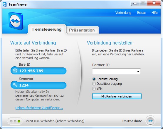 Auf diese Art können Windows-Anwender schnell und einfach – auch Betriebssystem-übergreifend – helfen, wenn entfernte Netzwerker, Freunde oder Familienmitglieder Hilfe am PC benötigen. Ausserdem bietet TeamViewer die Möglichkeit, anderen den eigenen Bildschirm zu präsentieren (für Schulungen beispielsweise) oder Dateien zu übertragen.
