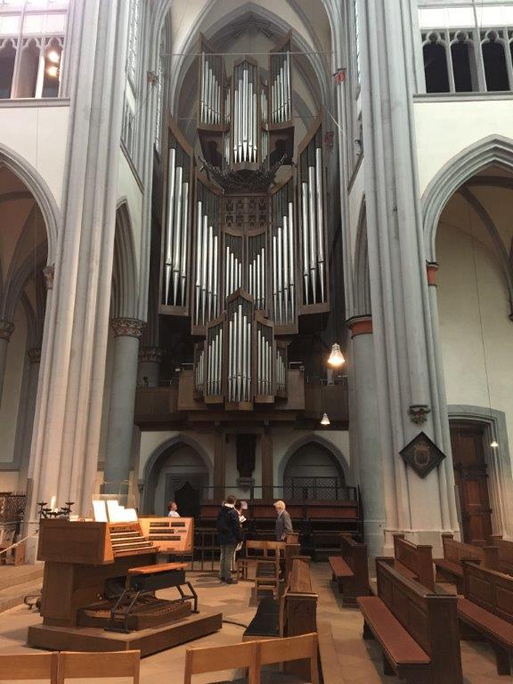 Wie immer hatte sich Gretel mit viel Material auf die Besichtigung vorbereitet und erklärte uns allen in einem ausführlichen Vortrag vor und in der Kirche die Geschichte und die Besonderheiten dieses Bauwerkes. Sie machte uns mit dem Begriff „Simultankirche“ bekannt – seit Mitte des 19. Jahrhunderts wird der Dom sowohl von der katholischen als auch von der evangelischen Kirche zu gleichen Teilen genutzt und unterhalten. Zum Abschluss unseres Rundganges konnten wir noch an einer halbstündigen Mittagsandacht teilnehmen und dabei die Kleistorgel (die kleinste Pfeife ist 7 mm groß und die größte über 12 m !!) hören.