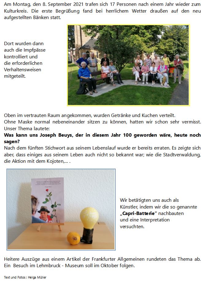 Der Kulturkreis trifft sich zu gemeinsamen Aktivitäten rund um das kulturelle Leben.
