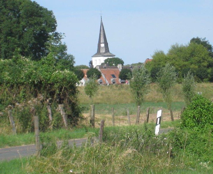 Vorbei am Kraftwerk Walsum schifften wir auf der Rheinfähre nach Orsoy ein. Dort sahen wir den Pulverturm, schöne Bauernhäuser und gepflegte Wohnsiedlungen von Flüchtlingen und Vertriebenen aus Schlesien, Pommern und anderen Ostgebieten. Wir wanderten entlang am Ufer des recht großen und tiefen Lohheider Sees. Er hatte sich, wie auch andere Seen der Region, vor Jahrzehnten nach Auskiesung und Ausbaggerung aufgefüllt. Dann weiter auf dem Jakobsweg nach Baerl.